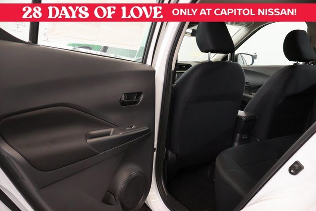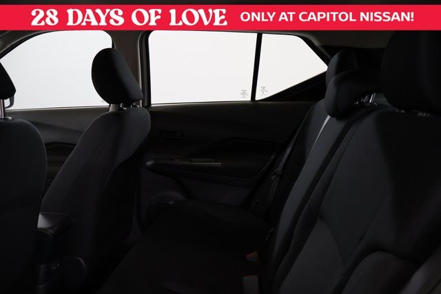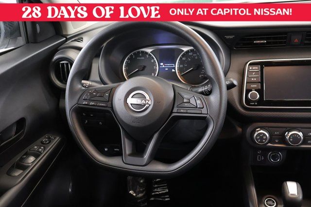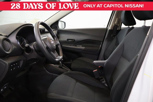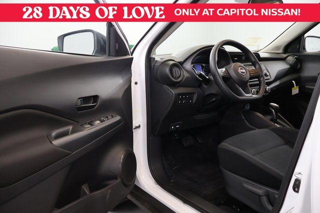 We Buy cars- Fast, Fair and Easy This 2025 Fresh Powder Nissan Kicks Play S FWD is well equipped and includes these features and benefits: 16" Steel Wheels with Full Covers, 6 Speakers, ABS brakes, Air Conditioning, AM/FM Audio System, AM/FM radio, Apple CarPlay/Android Auto, Auto High-beam Headlights, Blind Spot Warning, Brake assist, Bumpers: body-color, Cargo Blocks, Carpeted Floor Mats with Cargo Mat, Center Armrest with Storage, Cloth Seat Trim with Single Stitch, Driver door bin, Driver vanity mirror, Driver's Seat Mounted Armrest, Dual front impact airbags, Dual front side impact airbags, Electronic Stability Control, Front anti-roll bar, Front Bucket Seats, Front reading lights, Front wheel independent suspension, Fully automatic headlights, Illuminated entry, Knee airbag, Low tire pressure warning, Occupant sensing airbag, Outside temperature display, Overhead airbag, Panic alarm, Passenger door bin, Passenger vanity mirror, Power door mirrors, Power steering, Power windows, Radio data system, Rear Parking Sensors, Rear reading lights, Rear side impact airbag, Rear window defroster, Rear window wiper, Remote keyless entry, Speed control, Splash Guards Grain (4 Piece), Split folding rear seat, Sport steering wheel, Steering wheel mounted audio controls, Tachometer, Telescoping steering wheel, Tilt steering wheel, Traction control, Trip computer, and Variably intermittent wipers.