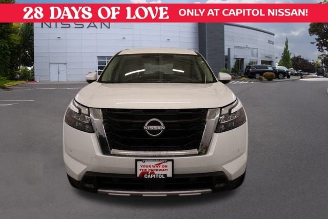 We Buy cars- Fast, Fair and Easy This 2025 Everest White Pearl Tricoat Nissan Pathfinder SL 4WD is well equipped and includes these features and benefits: 4WD, 3rd row seats: bench, 4-Wheel Disc Brakes, 6 Speakers, ABS brakes, Air Conditioning, Alloy wheels, AM/FM radio: SiriusXM, Auto High-beam Headlights, Auto-dimming Rear-View mirror, Automatic temperature control, Brake assist, Bumpers: body-color, Delay-off headlights, Driver door bin, Driver vanity mirror, Dual front impact airbags, Dual front side impact airbags, Electronic Stability Control, Emergency communication system, Exterior Parking Camera Rear, Four wheel independent suspension, Front anti-roll bar, Front Bucket Seats, Front Center Armrest, Front dual zone A/C, Front reading lights, Fully automatic headlights, Garage door transmitter: HomeLink, Heated door mirrors, Heated Front Bucket Seats, Heated front seats, Heated steering wheel, Illuminated entry, Knee airbag, Leather steering wheel, Leather-Appointed Seating Surfaces, Low tire pressure warning, Navigation system: NissanConnect with Navigation and Services, NissanConnect featuring Apple CarPlay and Android Auto, NissanConnect with Navigation and Services, Occupant sensing airbag, Outside temperature display, Overhead airbag, Overhead console, Panic alarm, Passenger door bin, Passenger vanity mirror, Power door mirrors, Power driver seat, Power Liftgate, Power passenger seat, Power steering, Power windows, Premium Paint, Radio data system, Radio: AM/FM Audio System, Rear air conditioning, Rear anti-roll bar, Rear reading lights, Rear seat center armrest, Rear side impact airbag, Rear window defroster, Rear window wiper, Reclining 3rd row seat, Remote keyless entry, Security system, Speed control, Speed-sensing steering, Split folding rear seat, Spoiler, Steering wheel mounted audio controls, Tachometer, Telescoping steering wheel, Tilt steering wheel, Traction control, Trip computer, Turn signal indicator mirrors, Variably intermittent wipers, and Wheels: 18" x 8J Machined Alloy. 4WD.