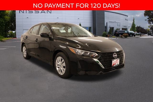We Buy cars- Fast, Fair and Easy This 2025 Super Black Nissan Sentra S FWD is well equipped and includes these features and benefits: CVT with Xtronic, Charcoal Cloth, 4 Speakers, ABS brakes, Air Conditioning, AM/FM radio, Auto High-beam Headlights, Blind Spot Warning, Body Colored Splash Guards (4-Piece), Brake assist, Bumpers: body-color, Carpeted Floor Mats with Trunk Mat, Cloth Seat Trim, Delay-off headlights, Driver door bin, Driver vanity mirror, Dual front impact airbags, Dual front side impact airbags, Electronic Stability Control, Four wheel independent suspension, Frameless EC Mirror with Homelink, Front anti-roll bar, Front Bucket Seats, Front Center Armrest, Front reading lights, Fully automatic headlights, Illuminated entry, Knee airbag, Low tire pressure warning, NissanConnect featuring Apple CarPlay and Android Auto, Occupant sensing airbag, Outside temperature display, Overhead airbag, Overhead console, Panic alarm, Passenger door bin, Passenger vanity mirror, Power door mirrors, Power steering, Power windows, Radio data system, Radio: AM/FM with RDS/MP3/Aux-in, Rear anti-roll bar, Rear Parking Sensors, Rear side impact airbag, Rear Spoiler, Rear window defroster, Remote keyless entry, Speed control, Speed-sensing steering, Split folding rear seat, Steering wheel mounted audio controls, Tachometer, Telescoping steering wheel, Tilt steering wheel, Traction control, Trip computer, Variably intermittent wipers, and Wheels: 16" Steel with Full Covers. CVT with Xtronic, Charcoal Cloth.