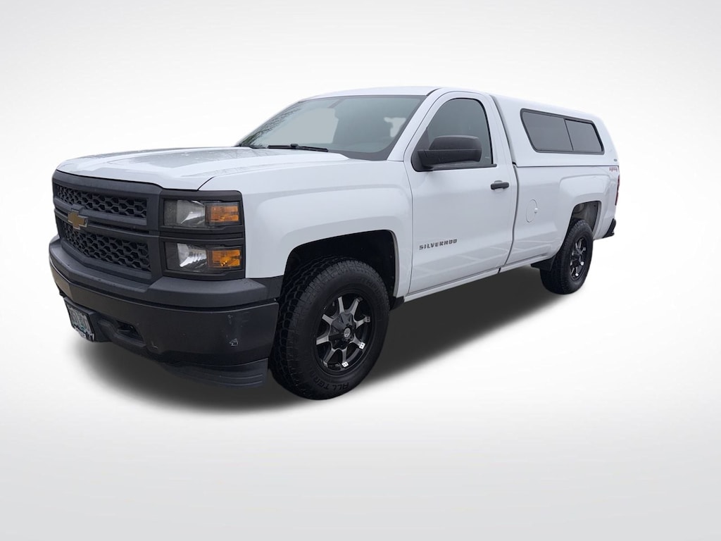 We Buy cars- Fast, Fair and Easy This 2014 Summit White Chevrolet Silverado 1500 Work Truck 4WD is well equipped and includes these features and benefits: 6-Speed Automatic Electronic with Overdrive, 4WD, Jet Black/Dark Ash Cloth, 150 Amp Alternator, 3.42 Rear Axle Ratio, 3.5" Diagonal Monochromatic Display, 4 Speakers, 4-Wheel Disc Brakes, 40/20/40 Front Split Bench Seat, ABS brakes, Air Conditioning, Black Power Adjustable Heated Outside Mirrors, Bluetooth® For Phone, Brake assist, Cloth Seat Trim, Deep-Tinted Glass, Delay-off headlights, Driver door bin, Dual front impact airbags, Dual front side impact airbags, Electronic Stability Control, Front anti-roll bar, Front Center Armrest w/Storage, Front Chrome Bumper, Front Frame-Mounted Black Recovery Hooks, Front License Plate Kit, Front reading lights, Front wheel independent suspension, Fully automatic headlights, Graphite-Colored Rubberized-Vinyl Floor Covering, Heavy Duty Suspension, Low tire pressure warning, Manual Tilt Wheel Steering Column, Occupant sensing airbag, OnStar 6 Months Directions & Connections Plan, Overhead airbag, Overhead console, Passenger door bin, Passenger vanity mirror, Power steering, Power Windows w/Driver Express Up, Radio data system, Radio: AM/FM Audio System w/Chevrolet MyLink, Rear Chrome Bumper, Rear step bumper, Remote Keyless Entry, SiriusXM Satellite & HD Radio, Speed control, Speed-sensing steering, Tachometer, Tilt steering wheel, Traction control, Trip computer, Variably intermittent wipers, and Voltmeter. 6-Speed Automatic Electronic with Overdrive, 4WD, Jet Black/Dark Ash Cloth.
