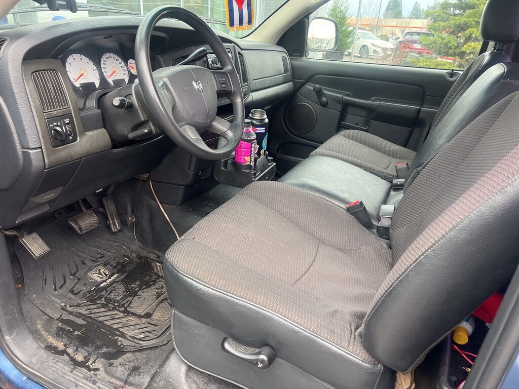 We Buy cars- Fast, Fair and Easy This 2004 Atlantic Blue Pearlcoat Dodge Ram 1500 ST RWD is well equipped and includes these features and benefits: 17" x 7" Argent Steel Wheels, 3.55 Axle Ratio, 4 Speakers, 4-Wheel Disc Brakes, ABS brakes, Air Conditioning, AM/FM Cassette w/Changer Control, AM/FM radio, Bumpers: chrome, Cassette, Center Hub, Driver door bin, Dual front impact airbags, EVAP Control System, Front anti-roll bar, Front Center Armrest, Front wheel independent suspension, Heavy Duty Vinyl 40/20/40 Split Bench Seat, Next Generation Engine Controller, Passenger cancellable airbag, Passenger door bin, Power steering, Rear step bumper, Speed-Sensitive Wipers, Tachometer, Tilt steering wheel, Variably intermittent wipers, and Voltmeter.