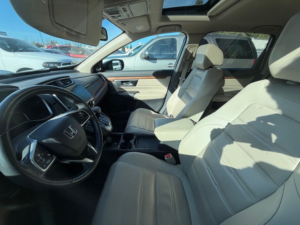 We Buy cars- Fast, Fair and Easy This 2019 Platinum White Pearl Honda CR-V Touring AWD is well equipped and includes these features and benefits: AWD, 18" Alloy Wheels, 4-Wheel Disc Brakes, 5.64 Axle Ratio, 9 Speakers, ABS brakes, Air Conditioning, Alloy wheels, AM/FM radio: SiriusXM, Apple CarPlay/Android Auto, Auto High-beam Headlights, Auto-dimming Rear-View mirror, Automatic temperature control, Blind Spot Information (BSI) System warning, Brake assist, Bumpers: body-color, Compass, Delay-off headlights, Driver door bin, Driver vanity mirror, Dual front impact airbags, Dual front side impact airbags, Electronic Stability Control, Exterior Parking Camera Rear, Forward collision: Collision Mitigation Braking System (CMBS) + FCW mitigation, Four wheel independent suspension, Front anti-roll bar, Front Bucket Seats, Front Center Armrest, Front dual zone A/C, Front fog lights, Front reading lights, Fully automatic headlights, Garage door transmitter: HomeLink, Heated door mirrors, Heated Front Bucket Seats, Heated front seats, Illuminated entry, Lane departure: Lane Keeping Assist System (LKAS) active, Leather Seat Trim, Leather Shift Knob, Low tire pressure warning, Memory seat, Navigation system: Honda Satellite-Linked Navigation System, Occupant sensing airbag, Outside temperature display, Overhead airbag, Overhead console, Panic alarm, Passenger door bin, Passenger vanity mirror, Power door mirrors, Power driver seat, Power Liftgate, Power moonroof, Power passenger seat, Power steering, Power windows, Radio data system, Radio: AM/FM/HD/SiriusXM Audio System, Rain sensing wipers, Rear anti-roll bar, Rear seat center armrest, Rear window defroster, Rear window wiper, Remote keyless entry, Roof rack: rails only, Security system, Speed control, Speed-sensing steering, Speed-Sensitive Wipers, Split folding rear seat, Spoiler, Steering wheel mounted audio controls, Tachometer, Telescoping steering wheel, Tilt steering wheel, Traction control, Trip computer, Turn signal indicator mirrors, and Variably intermittent wipers. AWD.