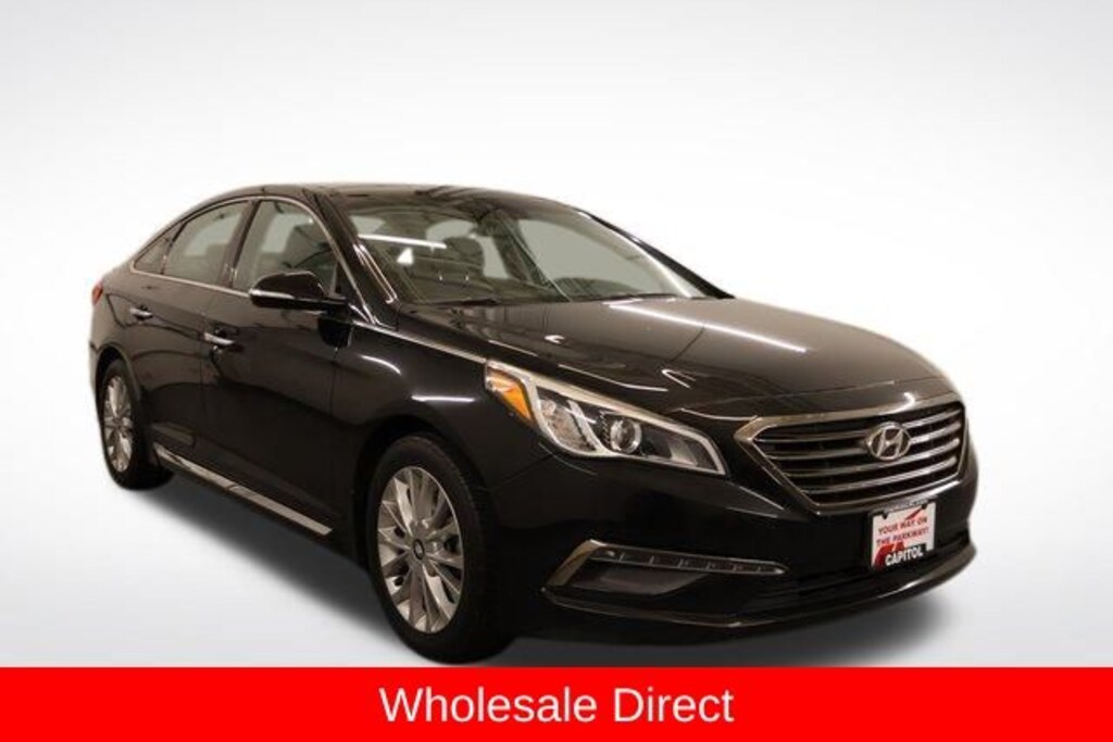 We Buy cars- Fast, Fair and Easy This 2015 Phantom Black Hyundai Sonata Limited FWD is well equipped and includes these features and benefits: Tech Package 05 (4.2-inch Color LCD Multi-Info Display, Heated Steering Wheel, Heated/Ventilated Front Bucket Seats, High-Gloss Window Surrounds, High-Intensity Discharge Xenon Headlights, Integrated Memory System (IMS), LED Interior Light Kit, Panoramic Sunroof, Radio: AM/FM/SiriusXM/CD/MP3 w/Navigation, and SiriusXM Travel Link (Complimentary Trial)), Black Leather, 4-Wheel Disc Brakes, 7 Speakers, ABS brakes, Air Conditioning, Alloy wheels, AM/FM radio: SiriusXM, Anti-whiplash front head restraints, Auto-dimming Rear-View mirror, Automatic temperature control, Brake assist, Bumpers: body-color, CD player, Compass, Delay-off headlights, Driver door bin, Driver vanity mirror, Dual front impact airbags, Dual front side impact airbags, Electronic Stability Control, Emergency communication system: Blue Link, Exterior Parking Camera Rear, Four wheel independent suspension, Front anti-roll bar, Front Bucket Seats, Front Center Armrest, Front dual zone A/C, Front reading lights, Fully automatic headlights, Garage door transmitter: HomeLink, Heated door mirrors, Heated Front Bucket Seats, Heated front seats, Heated rear seats, Illuminated entry, Knee airbag, Leather Seating Surfaces, Leather Shift Knob, Leather steering wheel, Low tire pressure warning, Occupant sensing airbag, Outside temperature display, Overhead airbag, Overhead console, Panic alarm, Passenger door bin, Passenger vanity mirror, Power door mirrors, Power driver seat, Power passenger seat, Power steering, Power windows, Radio: AM/FM/SiriusXM/CD/MP3 Audio System, Rear anti-roll bar, Rear reading lights, Rear seat center armrest, Rear window defroster, Remote keyless entry, Security system, Speed control, Speed-sensing steering, Speed-Sensitive Wipers, Split folding rear seat, Spoiler, Steering wheel mounted audio controls, Tachometer, Telescoping steering wheel, Tilt steering wheel, Traction control, Trip computer, Turn signal indicator mirrors, Variably intermittent wipers, and Wheels: 17 x 7.0J Aluminum Alloy. Black Leather, 4.2-inch Color LCD Multi-Info Display, Heated Steering Wheel, Heated/Ventilated Front Bucket Seats, High-Gloss Window Surrounds, High-Intensity Discharge Xenon Headlights, Integrated Memory System (IMS), LED Interior Light Kit, Panoramic Sunroof, Radio: AM/FM/SiriusXM/CD/MP3 w/Navigation, SiriusXM Travel Link (Complimentary Trial), Tech Package 05.