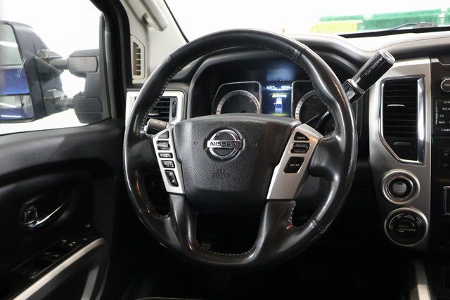 We Buy cars- Fast, Fair and Easy This 2018 Deep Blue Pearl Nissan Titan XD PRO-4X 4WD is well equipped and includes these features and benefits: 3.916 Axle Ratio, 4-Wheel Disc Brakes, 6 Speaker System, 6 Speakers, ABS brakes, Air Conditioning, Alloy wheels, AM/FM radio: SiriusXM, Automatic temperature control, Block heater, Brake assist, CD player, Delay-off headlights, Driver door bin, Driver vanity mirror, Dual front impact airbags, Dual front side impact airbags, Electronic Stability Control, Front anti-roll bar, Front Bucket Seats, Front Captain's Chairs, Front Center Armrest, Front dual zone A/C, Front fog lights, Front reading lights, Front wheel independent suspension, Heated door mirrors, Illuminated entry, Leather steering wheel, LED Fog Lights w/Bright Chrome Bezel, Low tire pressure warning, Navigation System, Outside temperature display, Overhead airbag, Overhead console, Panic alarm, Passenger door bin, Passenger vanity mirror, Power door mirrors, Power driver seat, Power steering, Power windows, Radio data system, Radio: NissanConnect w/Navigation & Mobile Apps, Rain sensing wipers, Rear anti-roll bar, Rear seat center armrest, Rear step bumper, Rear window defroster, Remote keyless entry, Rockford Fosgate Premium Audio w/12 Speakers, Security system, Speed control, Speed-sensing steering, Speed-Sensitive Wipers, Splash Guards, Split folding rear seat, Stain Resistant Cloth Seat Trim w/Vinyl Bolsters, Steering wheel mounted audio controls, Tachometer, Telescoping steering wheel, Tilt steering wheel, Traction control, Turn signal indicator mirrors, Variably intermittent wipers, Voltmeter, and Wheels: 18" x 7.5" Painted Dark Finish Alloy.
