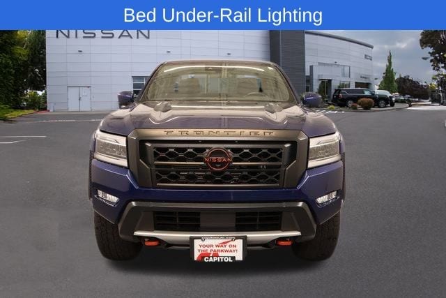 We Buy cars- Fast, Fair and Easy This 2022 Deep Blue Pearl Nissan Frontier PRO-4X 4WD is well equipped and includes these features and benefits: PRO-4X Comfort & Convenience Package (120V Power Outlet in Bed, 120V Power Outlet in Rear Center Console, Bed Under-Rail Lighting, Heated Front Seats, Heated Outside Mirrors, Heated Steering Wheel, Intelligent Around View Monitor (I-AVM), Remote Engine Starter, Spray-In Bedliner, Trailer Hitch w/Wiring Harness, Utili-Track System, and Wireless Charging For Personal Devices), Technology Package (Blind Spot Warning, High Beam Assist (HBA), Intelligent Cruise Control, Lane Departure Warning System, Rear Automatic Braking (RAB), Rear Cross Traffic Alert (RCTA), Rear Sonar System, and Traffic Sign Recognition (TSR)), Off-Road Protection Package, 4WD, 17" Alloy Wheels, 3.692 Axle Ratio, 4-Wheel Disc Brakes, 6 Speakers, ABS brakes, Air Conditioning, Alloy wheels, AM/FM radio: SiriusXM, Anti-whiplash front head restraints, Auto High-beam Headlights, Automatic temperature control, Brake assist, Bumpers: body-color, Delay-off headlights, Driver door bin, Driver vanity mirror, Dual front impact airbags, Dual front side impact airbags, Electronic Stability Control, Emergency communication system: NissanConnect Services, Front anti-roll bar, Front Bucket Seats, Front Center Armrest, Front dual zone A/C, Front fog lights, Front reading lights, Front wheel independent suspension, Fully automatic headlights, Illuminated entry, Knee airbag, Leather Shift Knob, Low tire pressure warning, Navigation system: Nissan Navigation with Voice Recognition, Occupant sensing airbag, Off-Road Style Step Rails, Overhead airbag, Overhead console, Panic alarm, Passenger door bin, Passenger vanity mirror, Power door mirrors, Power driver seat, Power steering, Power windows, PRO Embroidered Premium Cloth Seat Trim, PRO-4X Mud Flaps, Radio data system, Radio: SXM/AM/FM/AUX/USB Audio System w/6 Speakers, Rear anti-roll bar, Rear seat center armrest, Rear step bumper, Remote keyless entry, Security system, Speed control, Speed-sensing steering, Split folding rear seat, Steering wheel mounted audio controls, Tachometer, Tilt steering wheel, Traction control, Trip computer, Variably intermittent wipers, and Voltmeter. 4WD, 120V Power Outlet in Bed, 120V Power Outlet in Rear Center Console, Bed Under-Rail Lighting, Blind Spot Warning, Heated Front Seats, Heated Outside Mirrors, Heated Steering Wheel, High Beam Assist (HBA), Intelligent Around View Monitor (I-AVM), Intelligent Cruise Control, Lane Departure Warning System, PRO-4X Comfort & Convenience Package, Rear Automatic Braking (RAB), Rear Cross Traffic Alert (RCTA), Rear Sonar System, Remote Engine Starter, Spray-In Bedliner, Technology Package, Traffic Sign Recognition (TSR), Trailer Hitch w/Wiring Harness, Utili-Track System, Wireless Charging For Personal Devices.